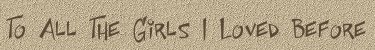 To all the girls I've loved before